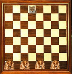 - Se necesita el tablero de juego (se juega sobre el tablero del ajedrez), una ficha (el zorro) y 4 fichas de otro color (los perros).