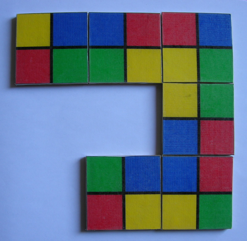 6 cuadrados ~ 4 colores