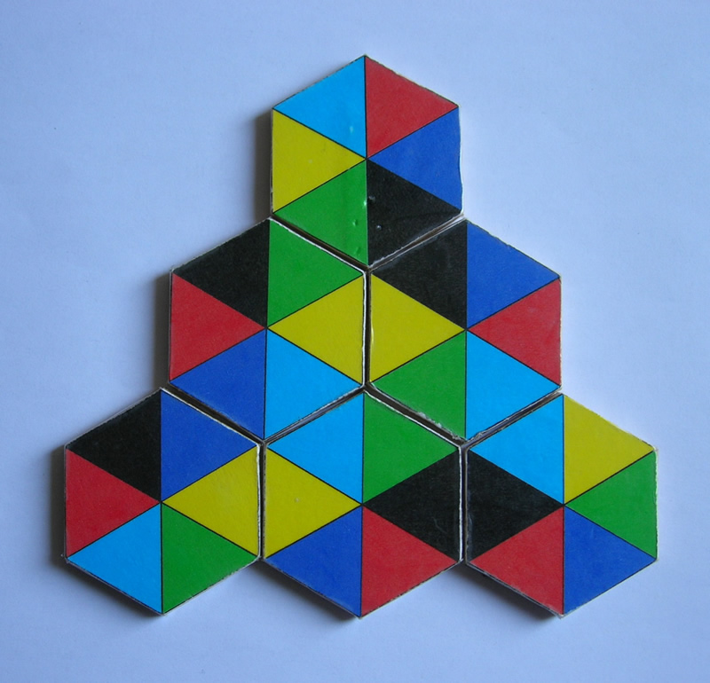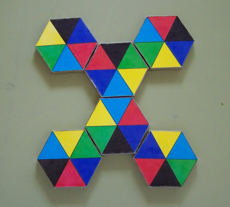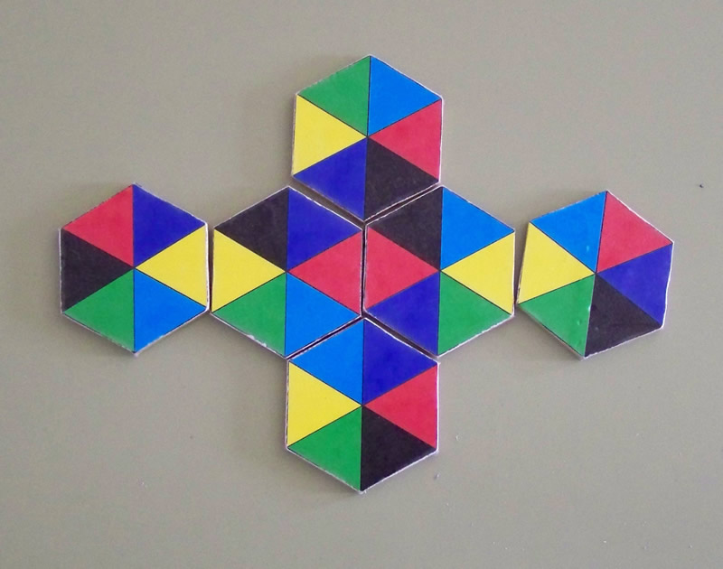7 hexágonos ~ 6 colores |